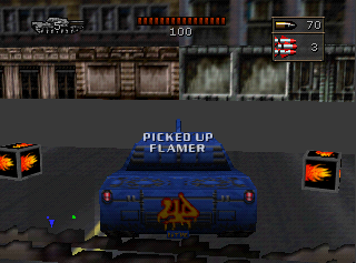 Two unused pickups, "FLAMER" (no function) and "SMOKESCREEN" (creates a smokescreen, similar to the weapon variant), can be found within the game's code. "FLAMER" most likely appeared later in BattleTanx: Global Assault. It's unclear what "SMOKESCREEN" would have been used for.